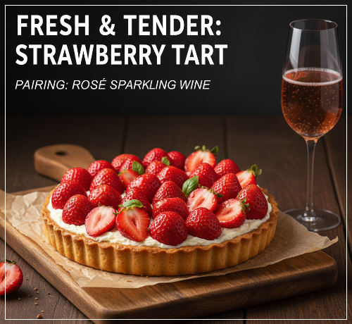 ★ 페어링 와인: 딸기 타르트의 상큼한 과실향과 크림의 부드러움에는 로제 스파클링 와인이나 모스카토 다스티(Moscato d'Asti)가 훌륭한 선택입니다. 로제 스파클링은 딸기의 붉은색과 어우러져 시각적인 즐거움을 더하고, 모스카토 다스티의 달콤함과 섬세한 기포는 타르트의 풍미를 더욱 돋보이게 합니다.