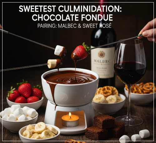★ 페어링 와인: 초콜릿 퐁듀는 찍어 먹는 재료에 따라 와인 페어링이 달라질 수 있지만, 일반적으로 달콤하고 부드러운 맛에는 스위트한 로제 와인이나 말벡(Malbec), 또는 달콤한 셰리(Sherry)가 좋습니다. 특히 과일 위주로 퐁듀를 즐긴다면 로제 와인의 산뜻함이, 마시멜로나 브라우니 등을 함께 한다면 말벡의 진한 과실향이 초콜릿과 잘 어울립니다.
